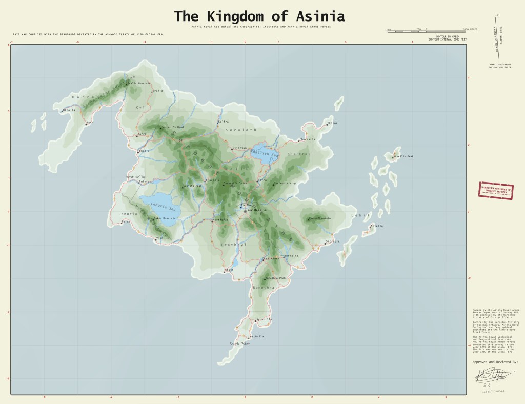 A topographic map of Asinia made in compliance with the Ashwood Treaty Circa GE 1250.